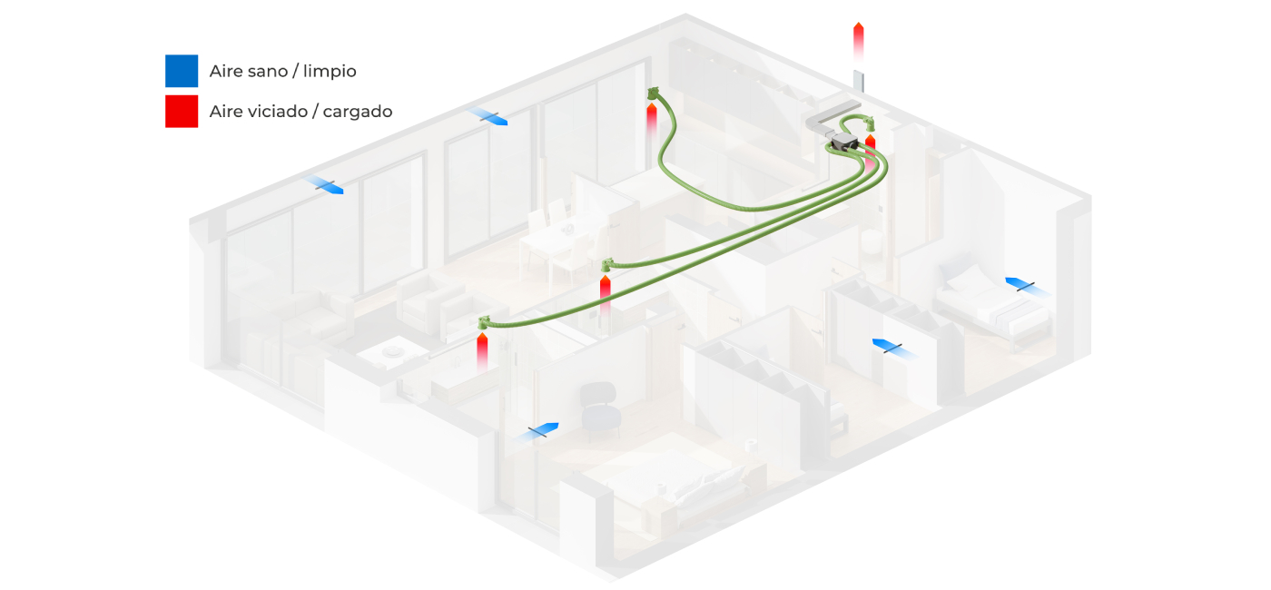 Este sistema es ideal para viviendas que buscan una solución económica y eficiente para garantizar un ambiente saludable y cumplir con las normativas básicas de ventilación.